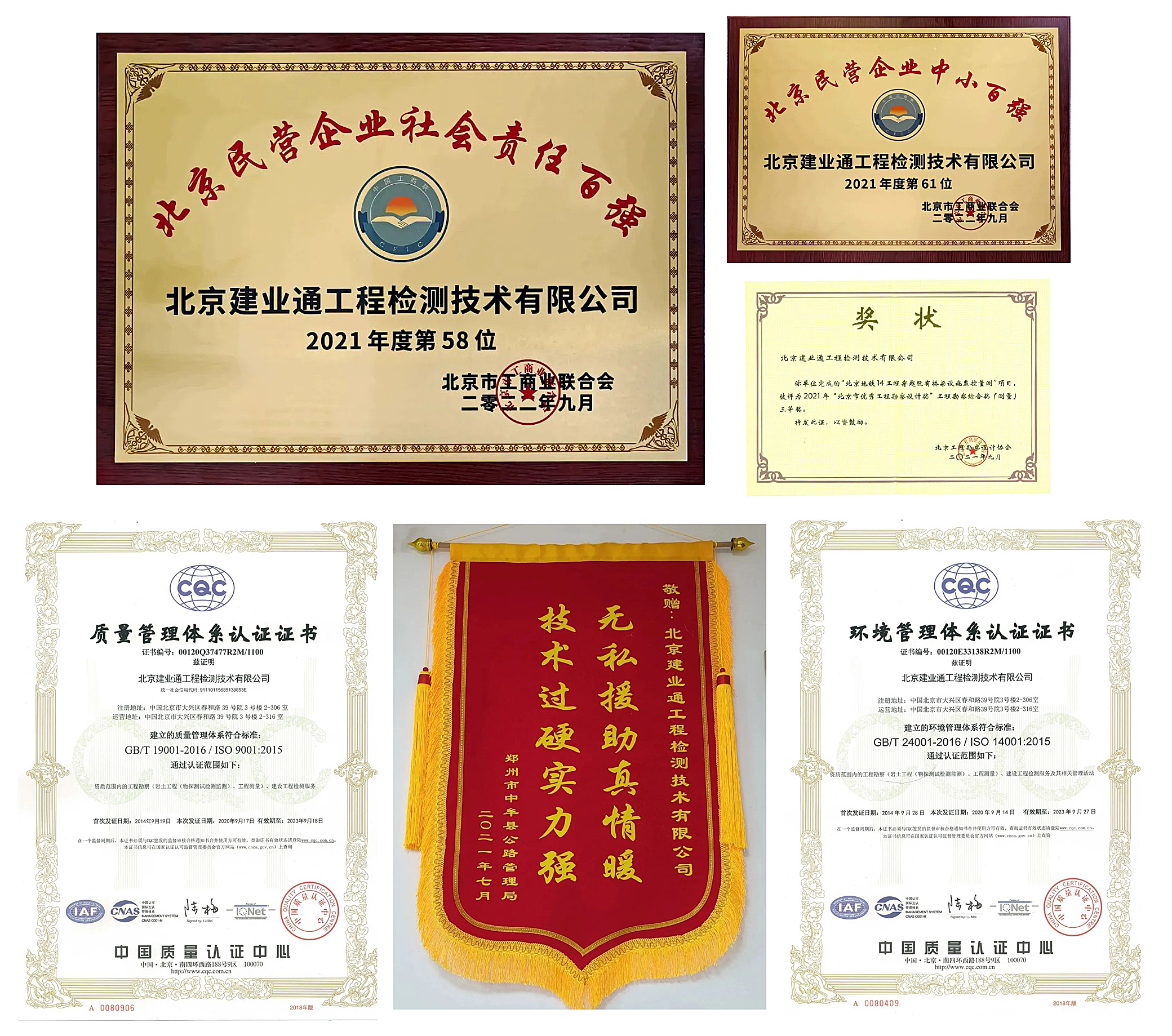 同時(shí),憑借較高的行業(yè)專注度、豐富的科技創(chuàng)新成果、穩(wěn)扎穩(wěn)打的科研能力以及積極履行社會責(zé)任,北京建業(yè)通在企業(yè)高質(zhì)量發(fā)展方面也取得了諸多成績,榮獲了"北京民營企業(yè)中小百強(qiáng)""北京民營企業(yè)社會責(zé)任百強(qiáng)""北京市共鑄誠信企業(yè)"等榮譽(yù),連續(xù)多年被評為北京市軌道交通工程質(zhì)量檢測履約先進(jìn)單位、連續(xù)多年獲得北京市城市道路養(yǎng)護(hù)管理中心第三方監(jiān)測單位評比第一名的好成績。
