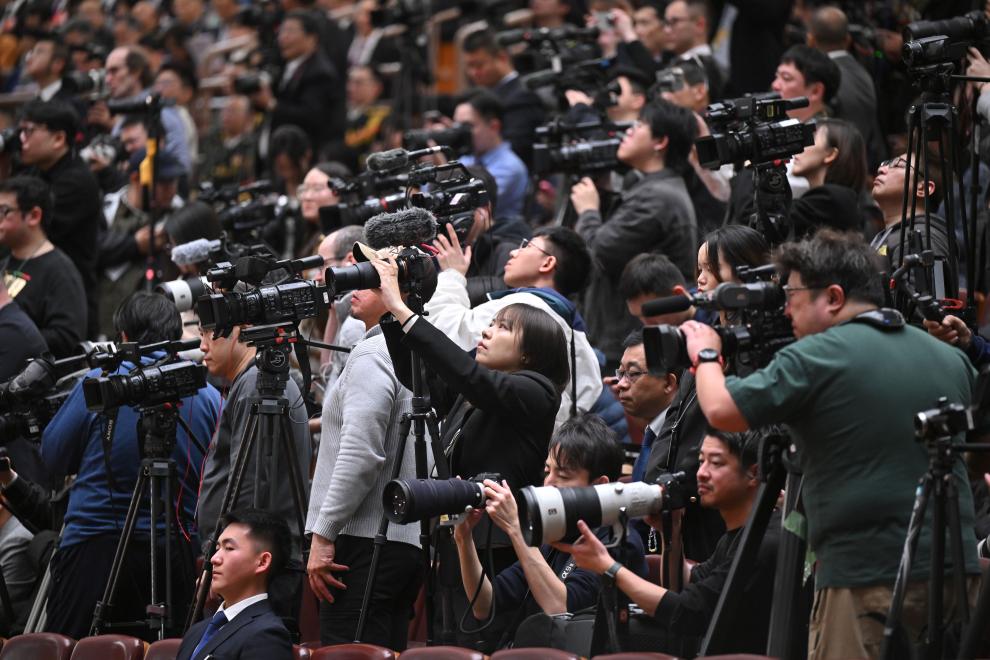 3月5日,十四屆全國人大三次會議開幕會在北京人民大會堂舉行。這是記者在會場采訪。