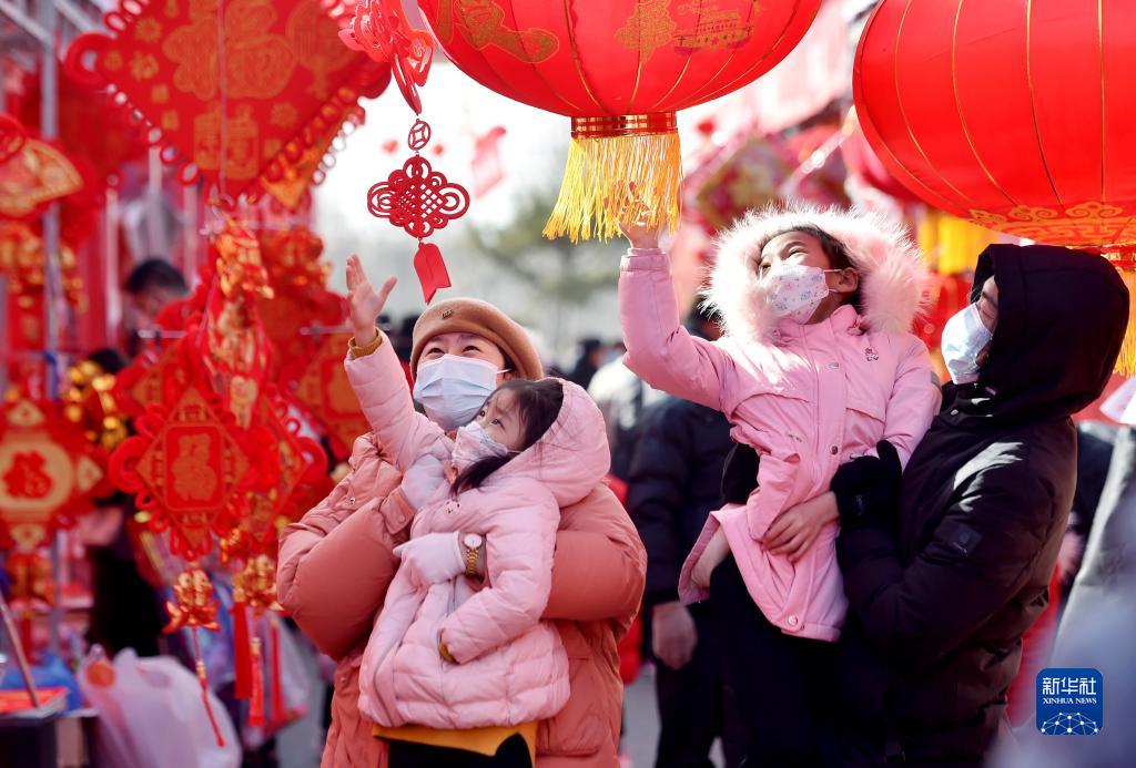 1月18日,人們?cè)诤颖笔∈仪f市正定縣的年貨大集上購(gòu)置紅燈籠等新年飾品。新華社發(fā)(張曉峰 攝)